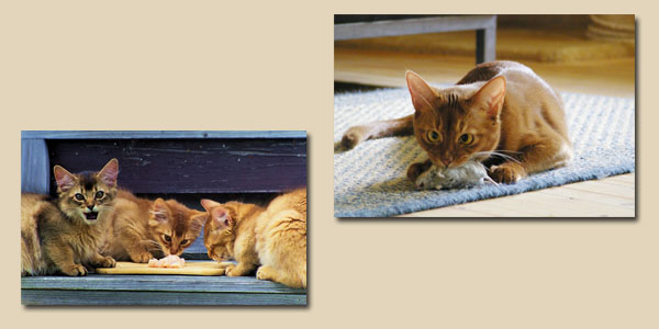 Bei der Kittenaufzucht habe ich mit der Rohfütterung, die bei den Kleinen den Hauptbestandteil der Nahrung ausmacht, die besten Erfahrungen gemacht. Ich selber füttere „gemischt“, auch im Hinblick auf die künftigen Katzenbesitzer, die nicht ganz auf Rohfütterung umsteigen wollen. Hauptbestandteil der Nahrung ist Rohfutter, daneben gebe ich Dosenfutter und auch Trockenfutter.